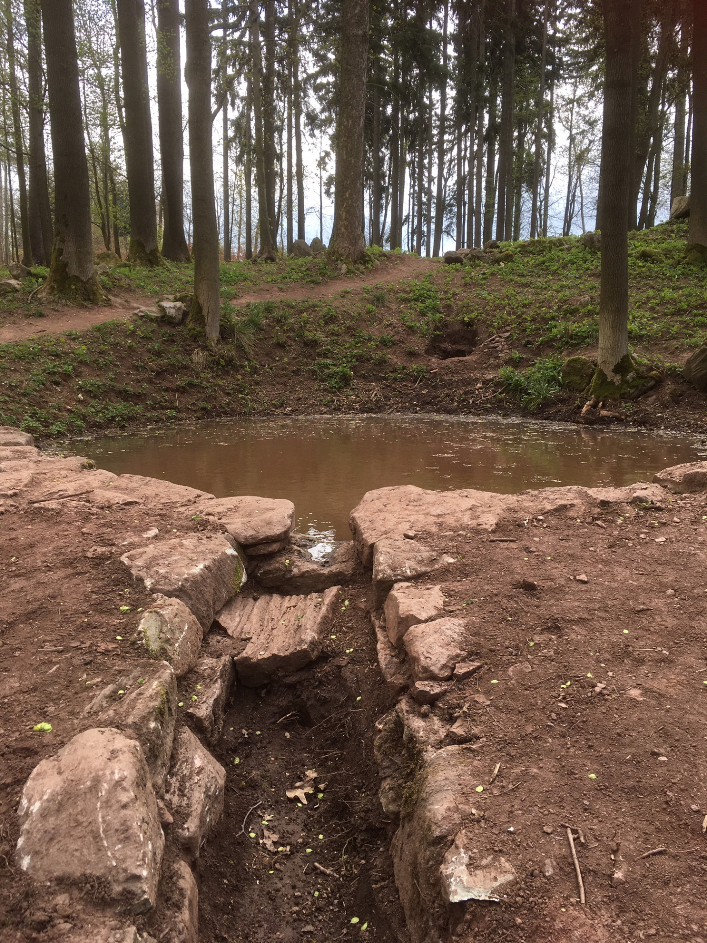 Terénní úpravy kolem jezírek opět pokročily. Díky technice se podařilo rozhrnout hromadu zeminy, čekající pod stromy od posledních úprav. "Rybníkáři" spolku pak zpevnili kameny hrázku dolního jezírka a vydláždili odtok z jezírka horního. V jezírkách se - navzdory velkému suchu - drží stále voda. Odtok je již ale suchý.